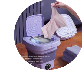 La "MINI FOLDING WASHING MACHINE" es una lavadora portátil y plegable, ideal para espacios pequeños o para llevar de viaje. Sus características principales incluyen: